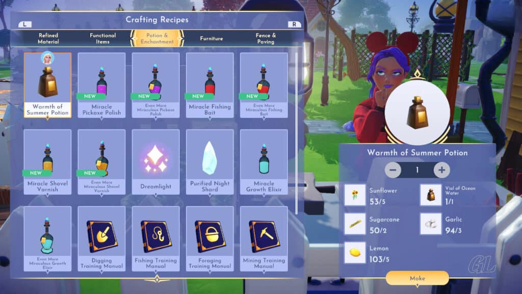 Head to a nearby crafting station to make the Warmth of Summer Potion. The crafting recipe is found under … no surprise … Potion & Enchantment.