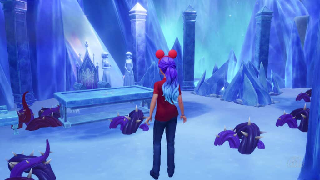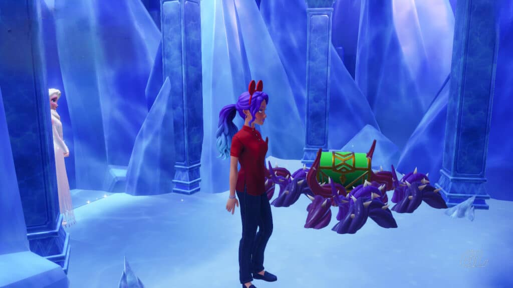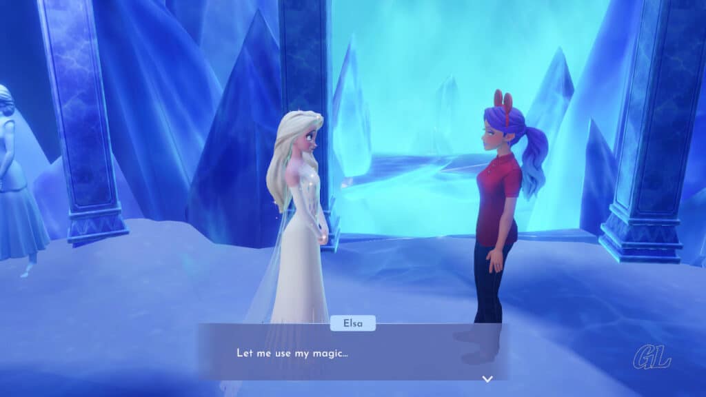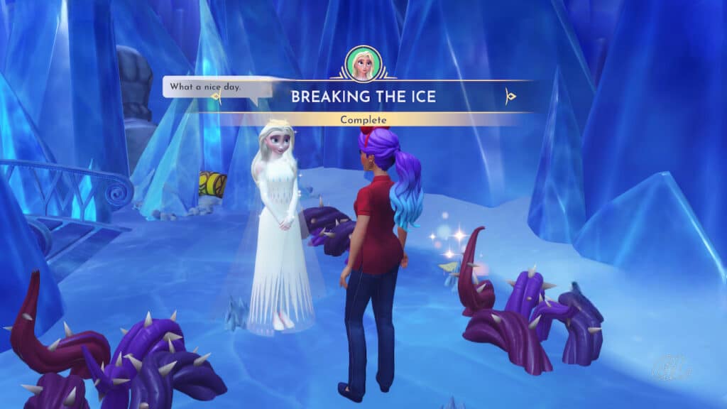 Since Elsa’s magic doesn’t affect the ice, she thinks your Dreamlight Magic may be needed to remove it. But when you try breaking the ice with your Royal Pickaxe, it proves to be too strong for that as well.
